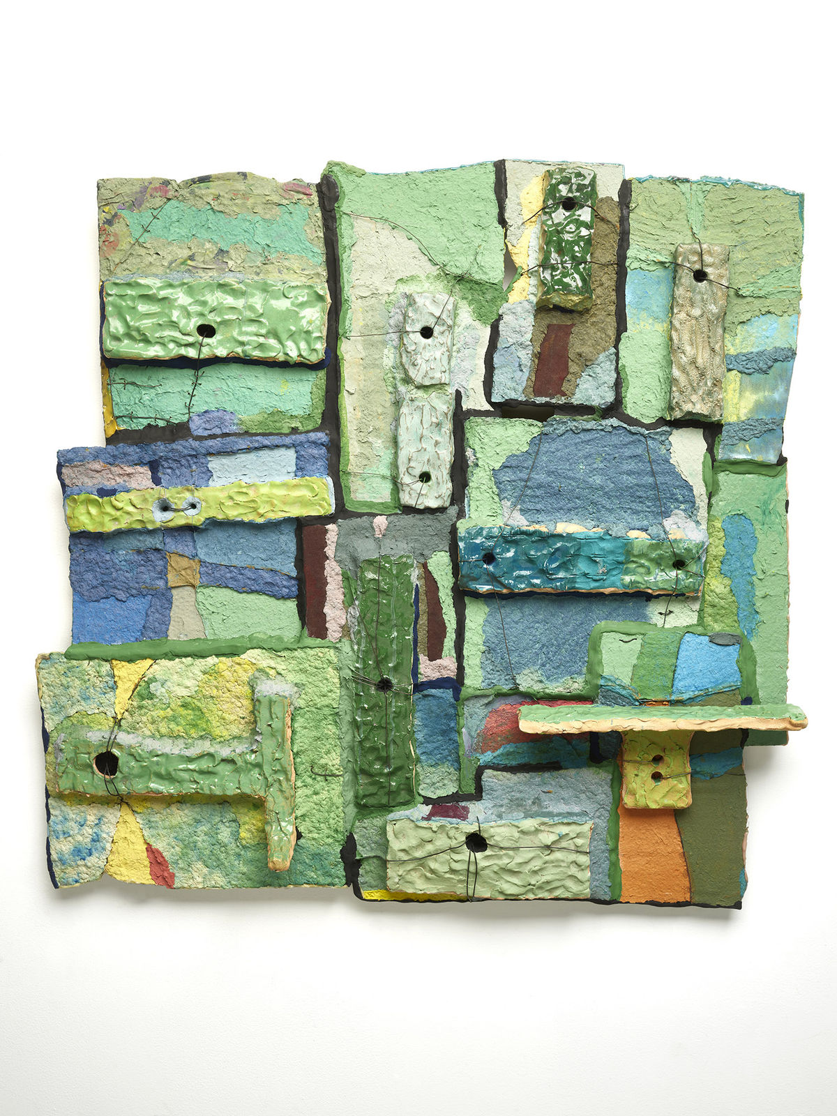 To this deliberate base Matson inserts painterly gestures and plays with dimension and composition. Tightly focused on contrasts in material and texture, slight alterations in line and palette compound as singular textiles develop or panels are collaged together. These expertly nuanced shifts beget wholes permeated by an undulant breath and fluidity, their humanity in contrast to the confines Matson sets for creation.